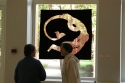 Näitusekülastajad Eva Jakovitsi tööd "Kuperjanovi" silmitsemas