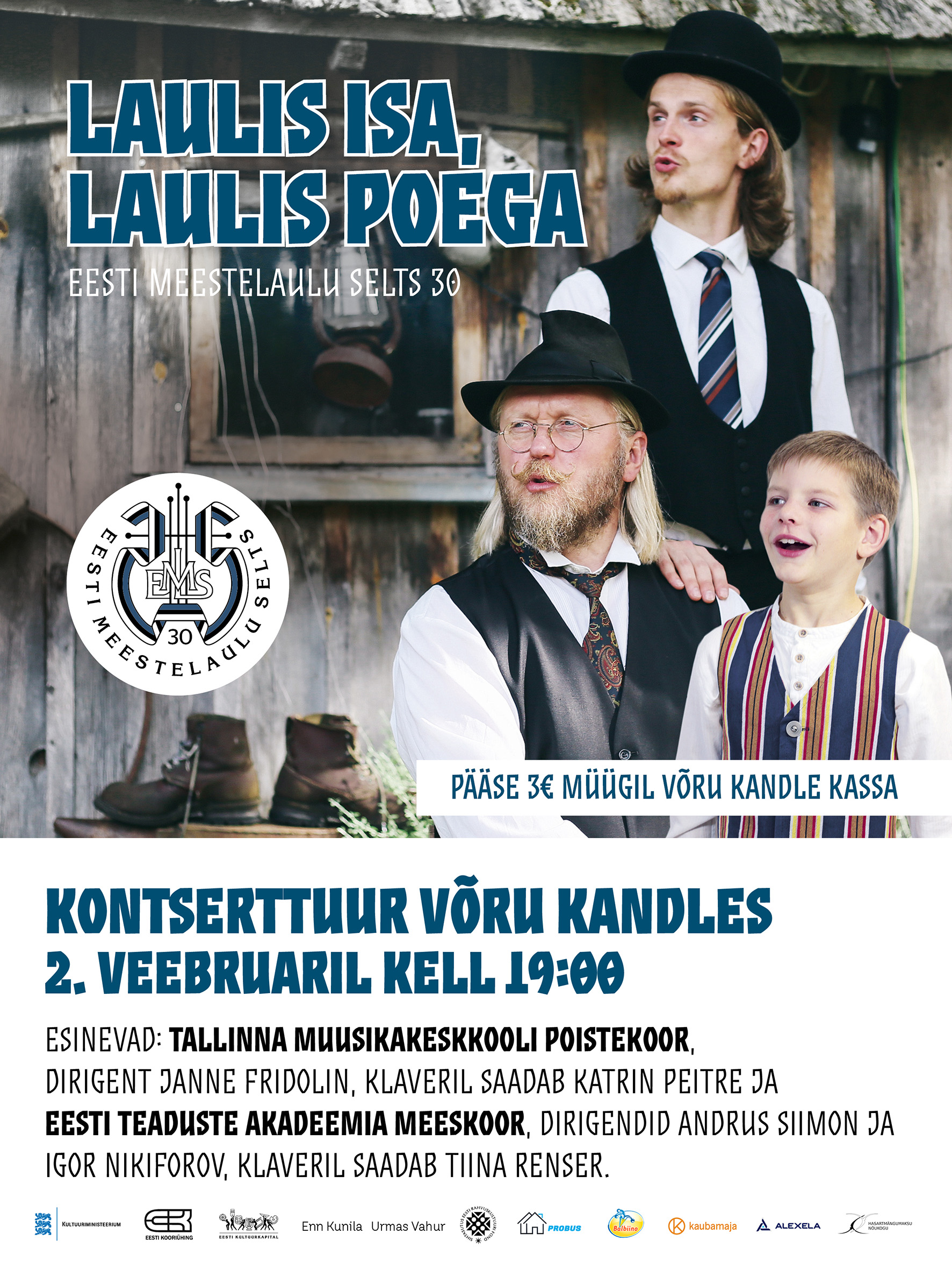 Ürituse nimi: Tallinna Muusikakeskooli poistekoori ja Eesti Teaduste Akadeemia Meeskoori kontsert "Laulis isa, laulis poega"