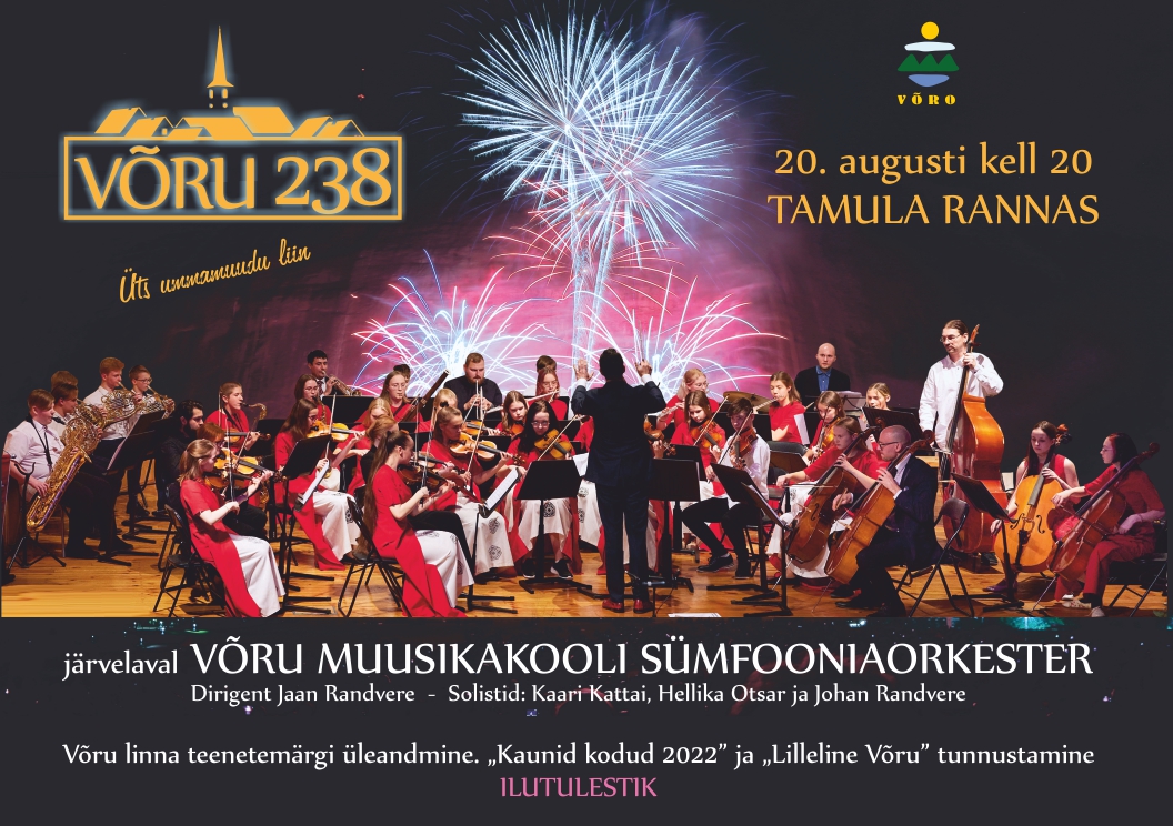 | Ürituse nimi: | VÕRU LINN 238 - sünnipäevakontsert Tamula järvelaval: Võru Muusikakooli Sümfooniaorkester ja solistid, dirigent Jaan Randvere. |
