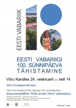 Ürituse nimi: Eesti Vabariigi 100. sünnipäeva tähistamine: dokumentaalfilmi "Kõik sündü Võrol" esilinastus.