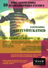 | Ürituse nimi: | VÕRU TANTSUKOOLI 10. juubelikontsert-etendus „Tantsukooli vastuvõtukatsed“ |
