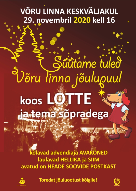 | Ürituse nimi: | Võru linna keskväljakul: Koos LOTTE ja tema sõpradega SÜÜTAME TULED VÕRU LINNA JÕULUPUUL |